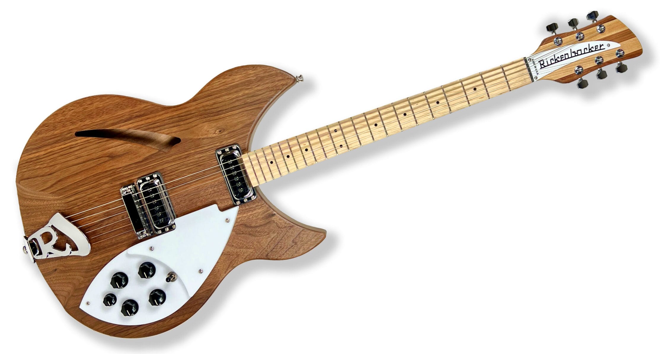 A natural spin on a classic, the W Series brings the same full, rich and warm sound that have made 330’s popular since the 1960’s. The iconic design is now strengthened with the natural character of walnut and polished with an oil finish. Two single coil pickups on a full size body are accented by a traditionally shaped sound hole. The 21 fret Maple fingerboard is punctuated by dot inlay fret markers, with full double cutaways permitting access to all the frets. Standard output is monaural through a single jack plate.